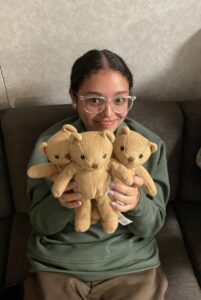 Wren also quality control tests the teddy bears we give to children we test in the lab!